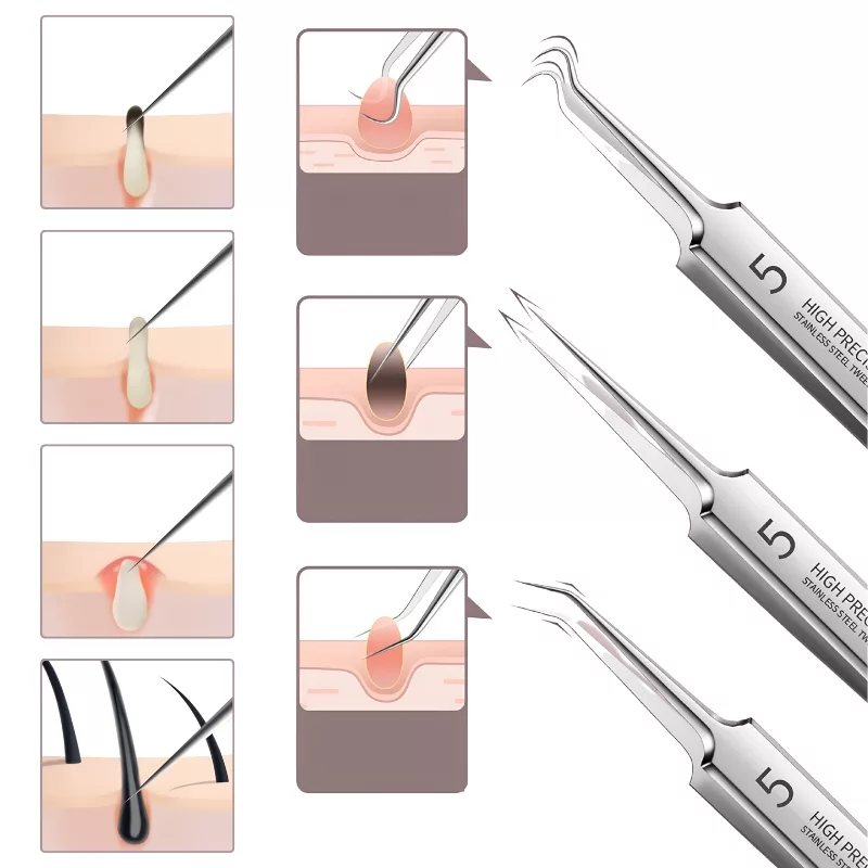 Onze set bevat mee-eterverwijderaars van verschillende vormen om aan diverse behoeften te voldoen. Je kunt snel verstopte gebieden aanpakken zonder je huid te beschadigen.