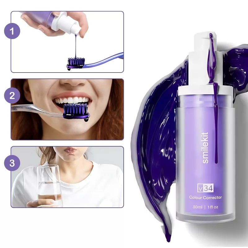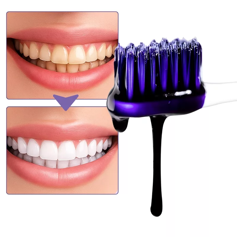 Bereik een merkbaar wittere lach na slechts een paar keer gebruiken van onze paarse tandpasta. Het helpt gele ondertonen te neutraliseren zonder harde chemicaliën. Het is veilig voor glazuur, waardoor het geschikt is voor dagelijks gebruik.